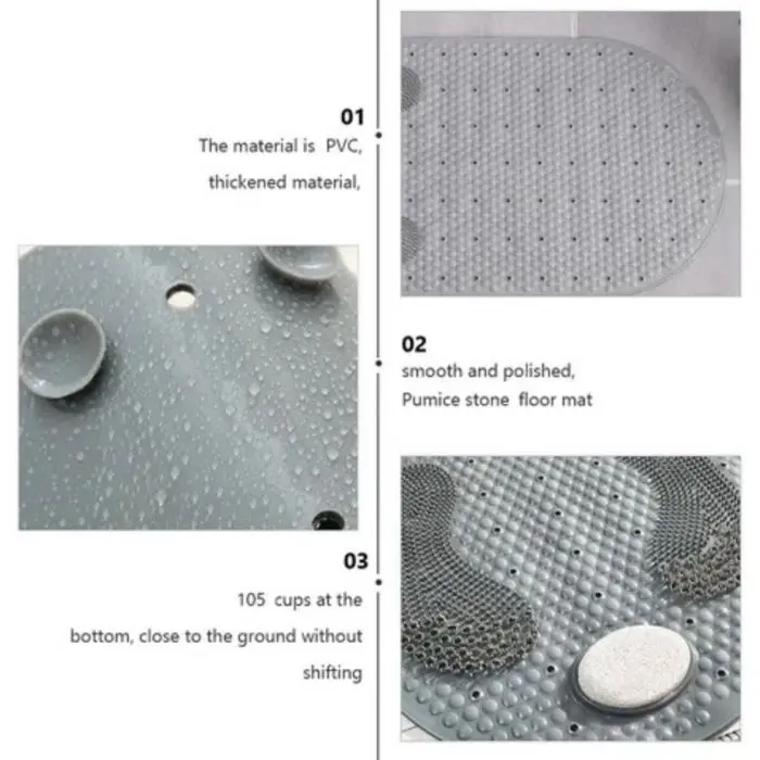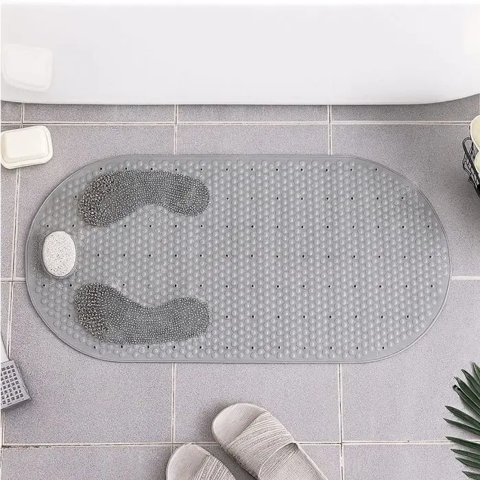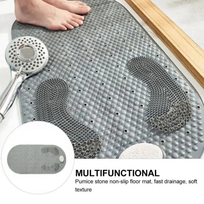 Alfombrilla de bañera antideslizanteCon piedra pómezMedidas: 80 x 40 cmColores gris y beige.